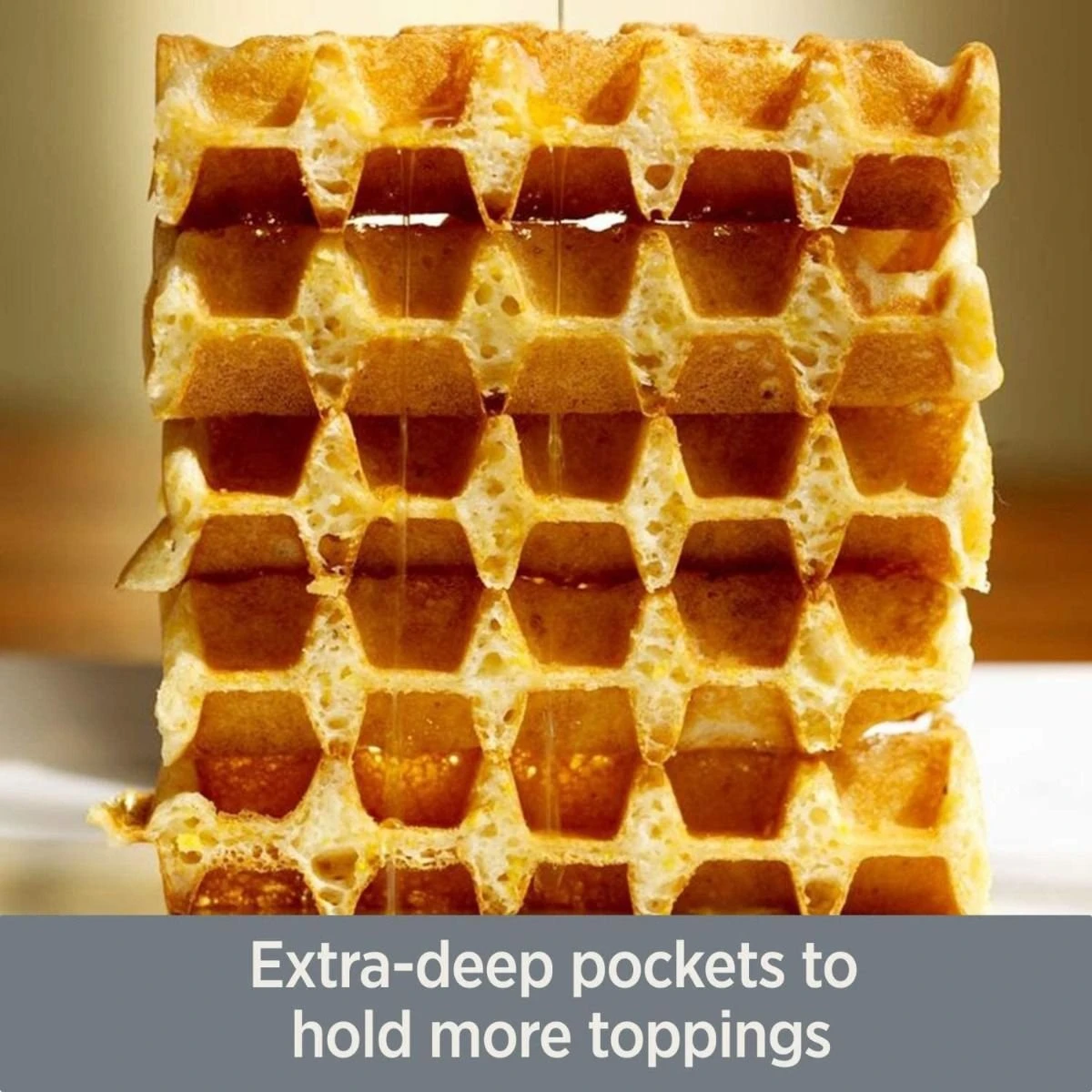 - Extra-deep waffle pockets allow for creativity with extra toppings!