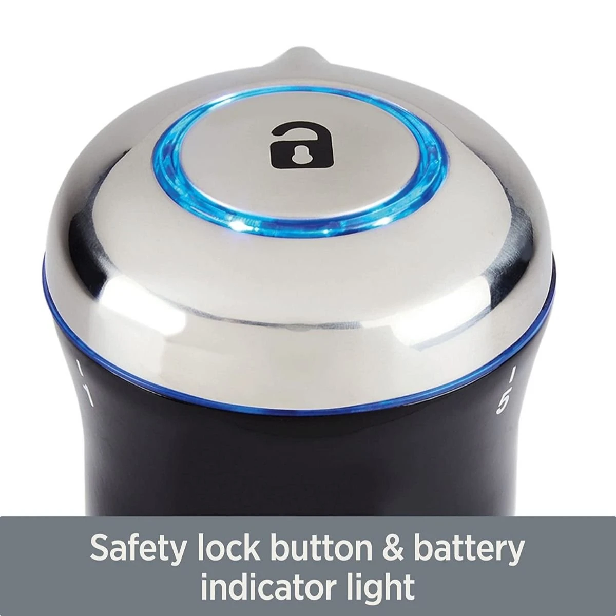 - Safety lock keeps blender from accidentally powering on