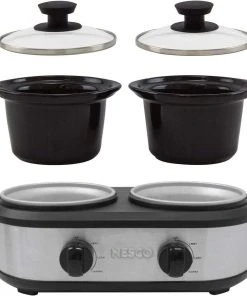 New ???? Nesco / American Harvest Nesco Dual Serving Slow Cooker Stainless Steel ????