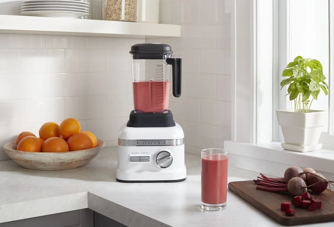 Blend even the trickiest ingredients easily with the KitchenAid Pro Line Series Blender in Frosted Pearl! Thanks to its powerful 3.5 HP motor and asymmetric blades, this blender crushes ingredients effortlessly. It has 11 speeds, allowing you to get just the texture you want, plus Intelli-Speed Motor Control that senses contents and maintains optimal speed to power through all the ingredients. With Variable Speed plus Pulse and Boost, you can customize your blending for any recipe. Experiment to find the best speed for your favorite recipes. This powerful blender is for everything from smoothies packed with leafy greens to fresh juices to pureed vegetables, even for making your own nut butter and nut milk. Plus, with its sleek design and beautiful Frosted Pearl finish, you’ll be proud to dress up your countertop with it!
