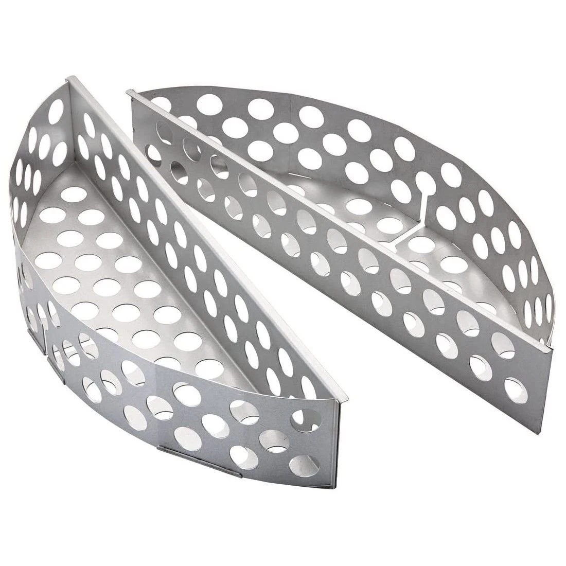 Keep your Rosle Kettle Grill burning longer with the Rosle 2-Piece Charcoal Basket! These baskets are compatible with the Rosle Kettle Grills Models F50 & F50 Air to better suit your grill to your needs. Made of aluminum-coated steel, these charcoal baskets take your grilling abilities to the next level by allowing for a more evenly distributed, long-lasting heat source that makes grilling a breeze. Prepare perfectly tender ribs or whole chickens that fall from the bone with ease – these baskets are ideal for indirect grilling foods that typically dry easily on the grill. By offering a repositionable heat source, the Rosle 2-Piece Charcoal Basket allows you to prepare your favorite grilled meats in your Rosle Kettle Grill just to your liking!