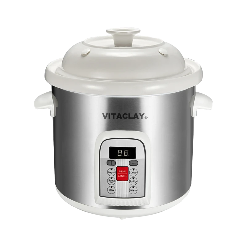 Life gets busier and busier, so invest in this fast VitaClay Smart 6-In-1 Crock & Stock Pot to cook four times faster than previous slow cookers. During the bustle of family activity, set and forget your 9.5-hour cooking timer with 30-minute increments. There is also a handy delay timer and automatic warm setting so that your family’s dinner is hot and ready when you are. Finally, a crock pot that fits your busy lifestyle! Stew, bone broth, chili, steamed vegetables, fish, soup–you can do it all with your new VitaClay Smart 6-In-1 Crock & Stock Pot – Stoneware (6 Qt)!