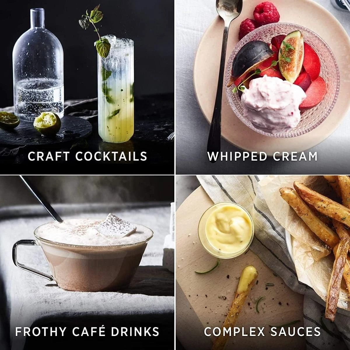 - Create flavored whipped cream, mousse, and others without any backsplash
